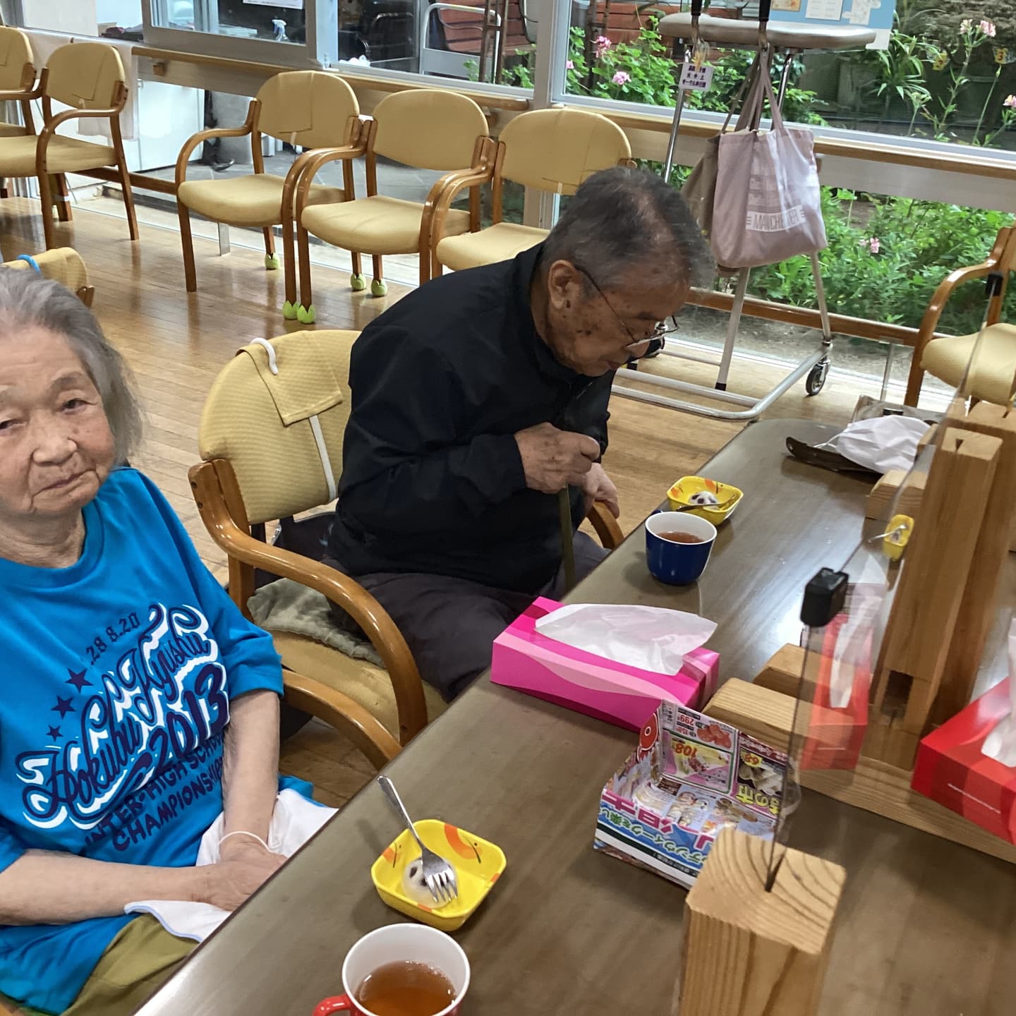 レクリエーションが終わった後はおやつです。厨房の手作りおやつを楽しんでいただけます。
