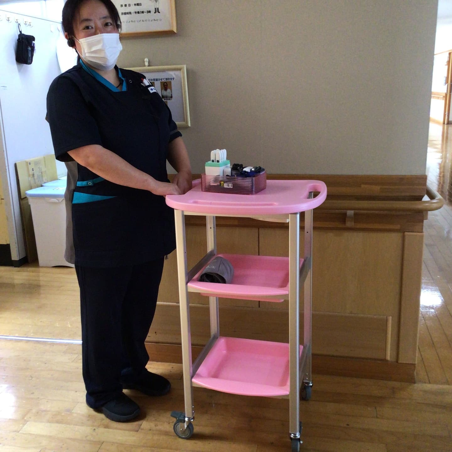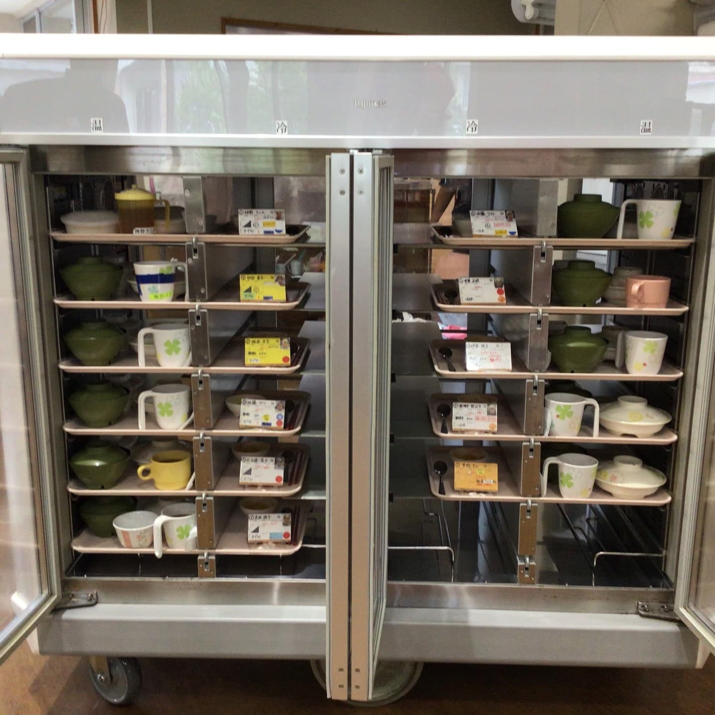 食事はお客様に合った食事形態で提供しています。温冷配膳車で美味しい状態の食事を食べていただいています。