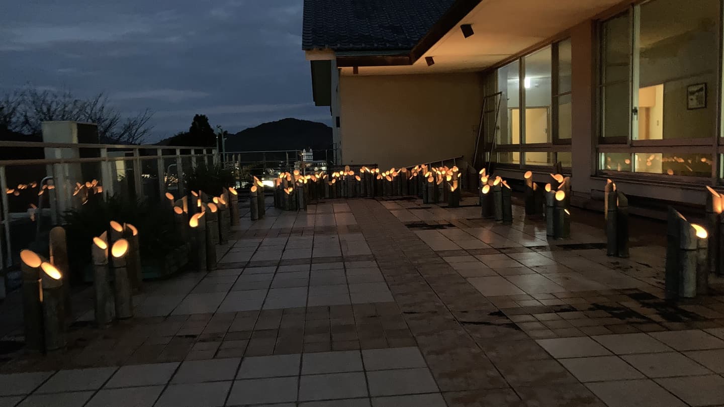 地元のお祭りの竹宵を再現。見て季節を感じていただいています。