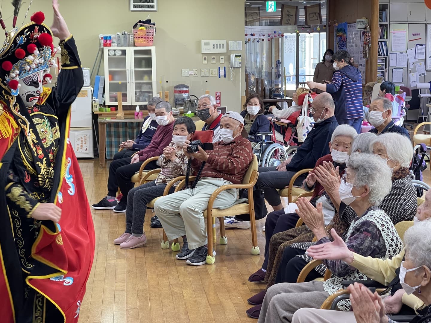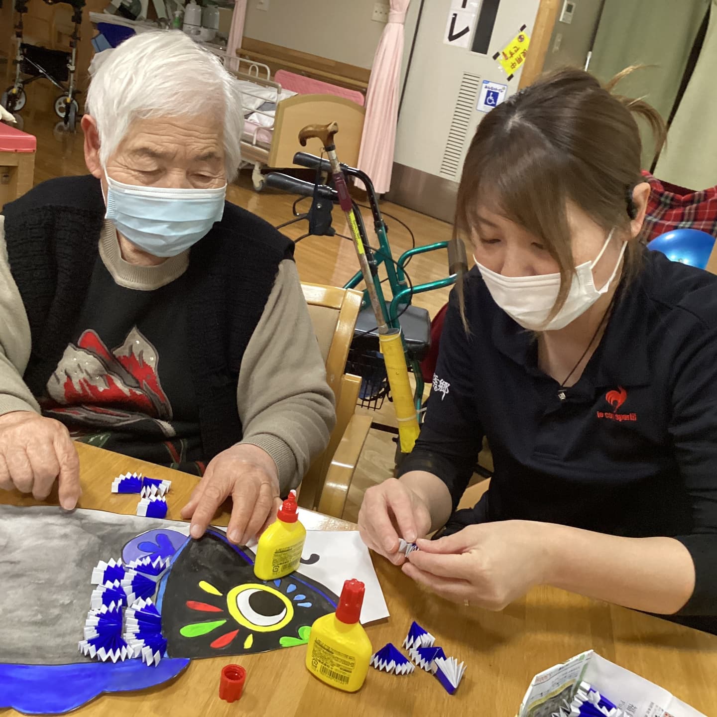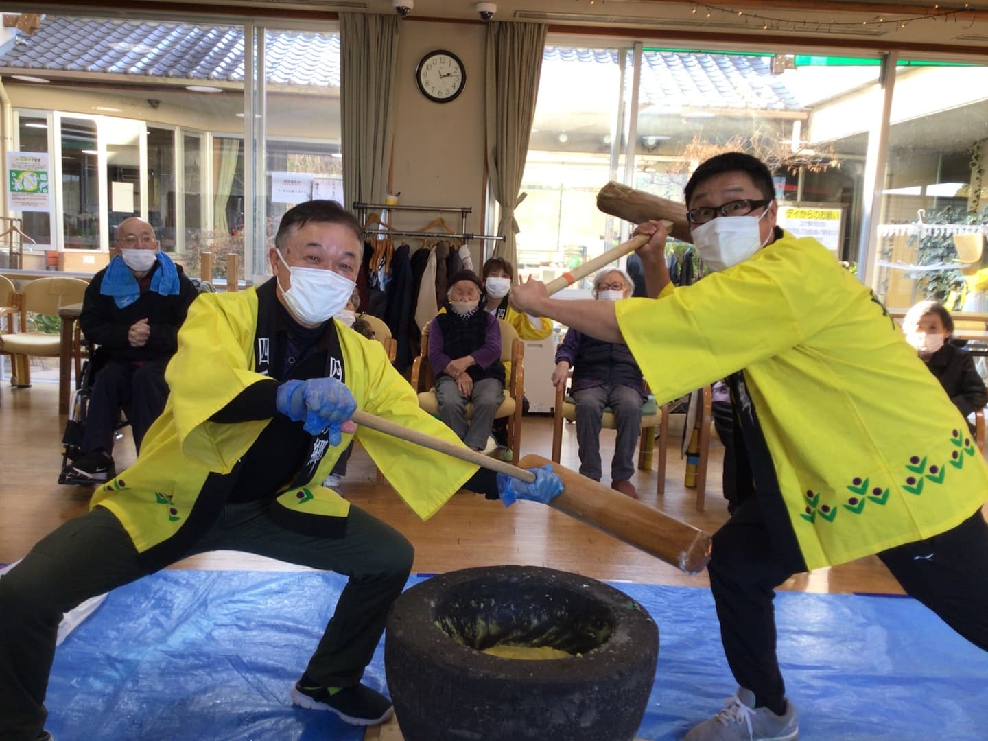 運動会・餅つき大会・調理実習(おやつ)・外出(花見、買い物、紅葉見学、初詣など)・開所祭(ボランティア・職員出し物)・敬老週間イベント・クリスマス週間イベント・レクリエーション(ゲーム、壁面制作、カレンダー制作、創作制作)・誕生日会・くもん学習療法などなど