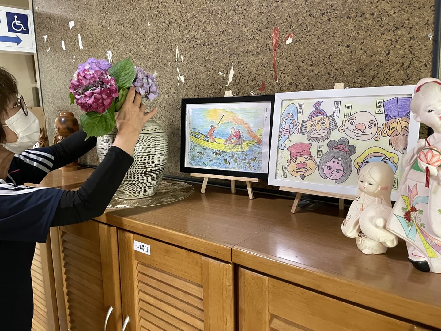 9:30までにデイサービスに到着します。笑顔でお出迎え、元気に挨拶。看護師が検温・血圧測定をして健康チェックを行います。また、利用者の皆様がそろいましたら朝のあいさつを行い1日の流れをお話をします。さぁデイサービスのスタートです!
